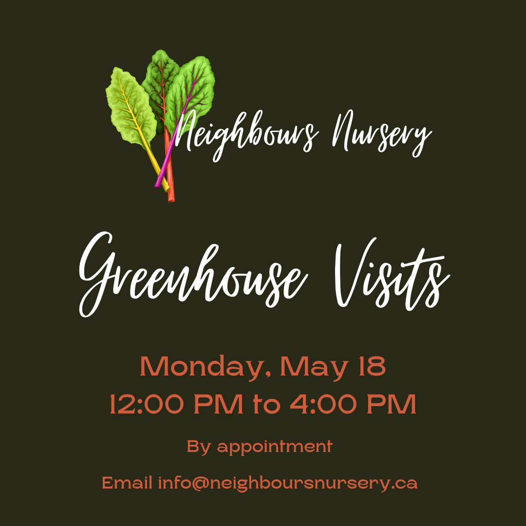 We welcome pre-arranged, weekday and weeknight visits to the nursery. Send an email to info@neighboursnursery.ca to set up a date.